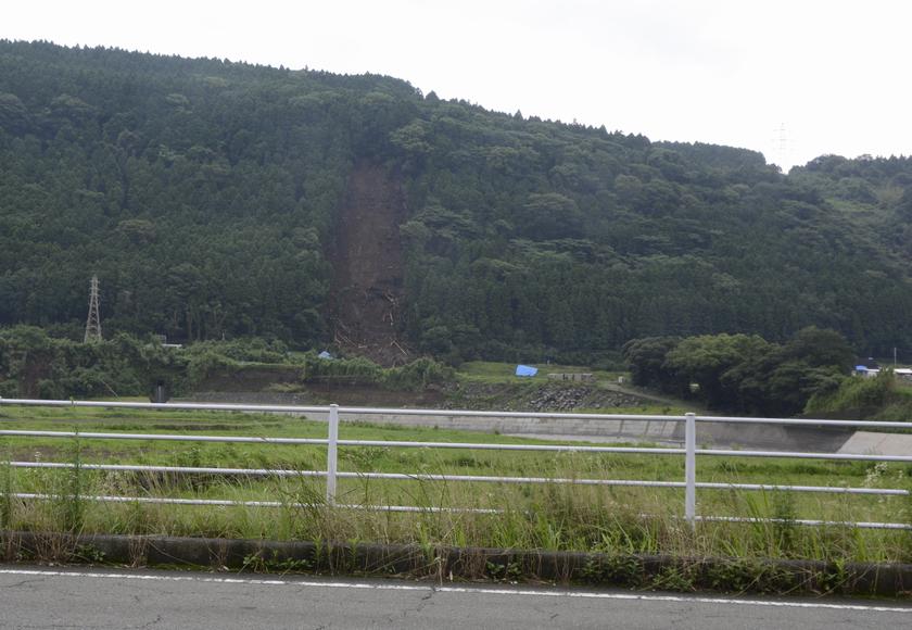 | 川を挟んで反対側の崩落場所に近い道路は通行できなさそうです。 |