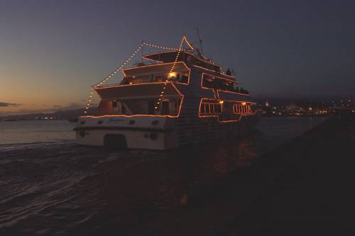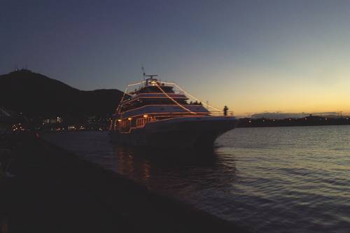 | 遊覧船が間近をとおります。 船上からの花火 クルーズでしょう。次回はチャレンジしたいな。 函館の遊覧船の公式サイトはこちらです。 |