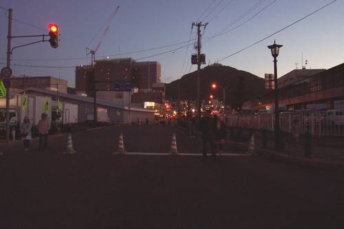 | 魚市場の前の通りは、一般車が通行できないようになっていました。 普段は、魚市場の中には、こんな風には入れないそうです。 |