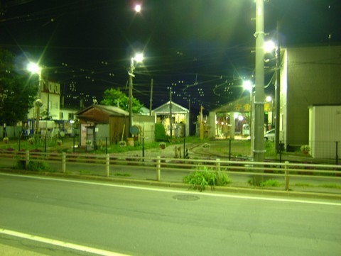 | どっく前 駅で進行方向が変わります。 | 駒場車庫 につきました。 ここで トイレ休憩 ・近所のコンビニで補給です。 |