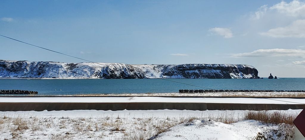 | 2月末の寒波直後の島遠景。あまり雪が降ることはない霧多布の周辺では貴重な写真かも。 |