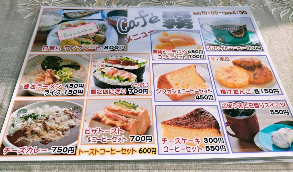 | 次の目的地へ行く前に喫茶店でも行こうと調べると、カフェがあると出ました。 Cafe 霧 。 近づくと目印があり、 |