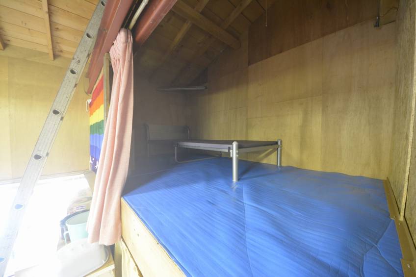 | なんとも不思議な寝台です。 足を延ばせることができるので人気だそうです。寝袋は必須でしょう。 |