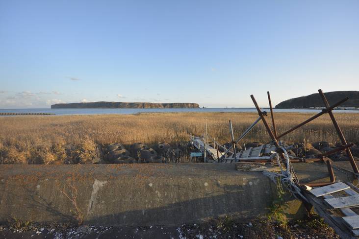 | 広大な空間が広がっていました。 ボートをトレーラーで引っ張ってくる方もいるそうです。 昆布干し場にもなるそうですが。 |