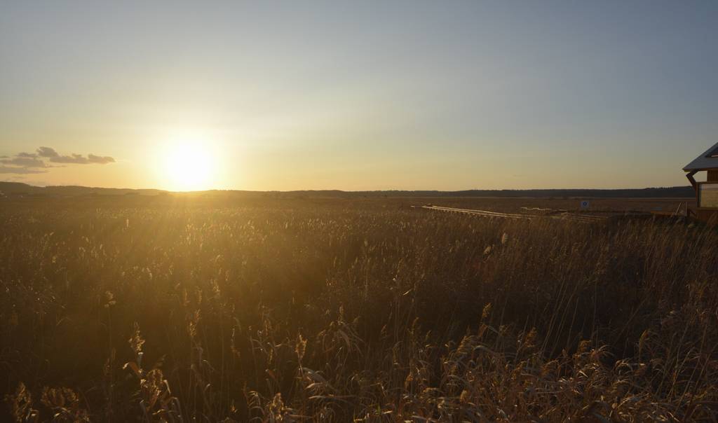 | 11月初旬は太陽が良い方向に沈みます。 宿から湿原は歩いていける距離なので写真の人にも向いているかも。 |